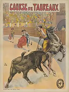 La corrida de rejón est l'affrontement du torero à cheval avec un taureau de combat qui sera tué avec une lance ou rejón[5].