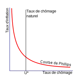 - si le taux de chômage U est inférieur au taux de chômage naturel U*, l'inflation tend à augmenter ;