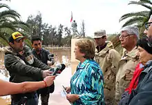 La présidente Michelle Bachelet a déclaré la zone sinistrée le , mettant sous un régime d'exception constitutionnel toute la région d'Atacama[2], pour permettre aux Forces armées de prendre le contrôle des opérations. Le phénomène météorologique a été qualifié par le gouvernement chilien de « plus grand désastre pluviométrique depuis 80 ans »[3],[4].