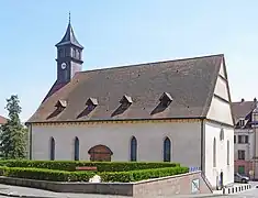 L’édifice légué par le prince Eberhard-Louis de Wurtemberg aux bourgeois de la ville en 1733[2], consacré le , fut désaffecté en 1949. Après avoir servi quelque temps pour stocker des vieux papiers destinés au recyclage, un incendie détruisit sa toiture en 1987. La restauration fut réalisée par « les Compagnons de France » et le temple aménagé en centre de conférence.