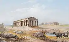 Ce premier temple d'Héra remonte à la seconde moitié du VIe siècle av. J.-C. Il est plus connu sous le nom de "basilique". Il a été bâti pour insister sur le prestige de l'architecture grecque. Il est orienté vers l'est. Malgré la division de la cella en deux, qui pourrait faire croire que le temple est dédié à deux divinités, il est bel et bien dédié à une seule divinité : Héra.