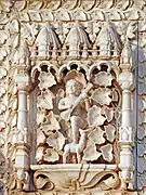 En face du temple, se dresse une façade en marbre pourvue de solides portes argentées. Dans l'embrasure de ces portes se trouvent plusieurs panneaux qui retracent l'histoire de la déesse.
