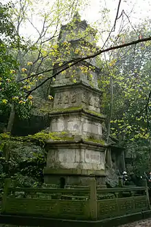 Cet important monastère des monts Wulin (武林山, ) est entouré de nombreuses grottes et sculptures religieuses directement dans la roche. La plus fameuse est Feilai Feng (飞来峰; « le pic qui coula ici »).