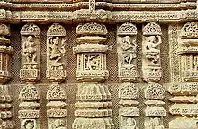 Les temples sont orientés dans le sens est-ouest, le sens de la course solaire. Le shikhara et le jagamohan du temple principal figure un chariot, tiré par des chevaux et monté sur 24 roues.