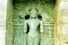 Il comporte trois niches où sont placées trois représentations de Sûrya en chlorite vert. Assez semblables, elles varient par de subtiles différences de décoration et d'ornementations. Le dieu est chaussé de bottes, ce qui rappelle son origine perse, il est vêtu d'une courte dhoti et porte de nombreux bijoux ainsi qu'une couronne. À ses pieds sont figurés à droite le royal donateur et à gauche son prêtre. Il surplombe de ses trois mètres cinquante de hauteur un attelage de sept chevaux représentant les jours de la semaine, et des déités subsidiaires l'entourent.