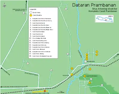- Le complexe de temples bouddhiques de Candi Sewu ("les mille temples") est antérieur à Roro Jonggrang. Il consiste en un sanctuaire principal entouré de temples plus petits alignés selon plusieurs carrés concentriques. Il possède des statues de gardien bien conservées, dont on trouve des répliques dans la cour centrale du kraton (palais royal) de Yogyakarta.