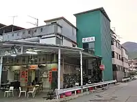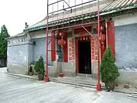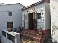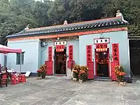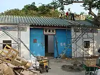 Temple de Tin Hau de Sha Lo Wan (沙螺灣天后宮) Construit en 1919. Situé à gauche du temple Ba Kong, dédié à Hung Shing. Un mur relie les deux temples sur la façade[17]. (Vu de face, le temple de Tin Hau se trouve à droite). |
