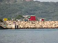 | Sur le brise-lames principal de l'abri anti-typhon de Shaukeiwan (en). Il n'est accessible que par bateau 22° 17′ 05″ N, 114° 13′ 58″ E |