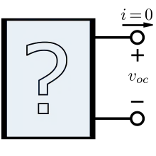 La tension de circuit ouvert, également dite potentiel à l'abandon ou encore OCV (de l'anglais "Open Circuit Voltage"), est la tension électrique entre les bornes d'un appareil déconnecté de tout circuit[1]. Elle est habituellement notée ou . Elle correspond à la tension à vide lorsque le circuit n'est connecté à aucune charge et donc qu'aucun courant électrique ne circule entre les bornes. Elle est équivalente à la tension de Thévenin et à la force électromotrice. C'est une grandeur utilisée notamment pour caractériser les batteries et les cellules photovoltaïques ; elle est alors spécifiée dans des conditions données — état de charge, température, éclairage, etc.