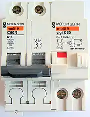 Témoin mécanique de courant de terre pour identifier le circuit en défaut.
