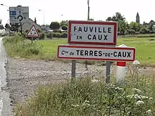 Terres-de-Caux est structuré autour d'un bourg-centre de Fauville-en-Caux, qui regroupe plus de 2 000 habitants et un bon millier d'emplois, et de 6 villages, qui sont les anciennes communes de d'Auzouville-Auberbosc, de Bennetot, de Bermonville, de Ricarville, de Saint-Pierre-Lavis et de Sainte-Marguerite-sur-Fauville[1]. La commune nouvelle compte de nombreux lieux-dits, comme Ronfrebosc, Auberbosc, Hameau joyeux, le Bout joyeux, Fauque, Les Juifs, La Londe, La Chaussée de Saint-Pierre, Carouge, le Boos.