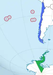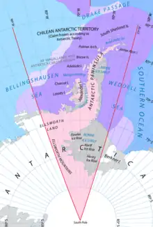Le Chili réclame les îles Shetland du Sud, la péninsule Antarctique et les îles environnantes, l'île Alexandre-Ier, l'île Charcot. Cependant depuis le traité sur l'Antarctique, les revendications territoriales sont gelées.
