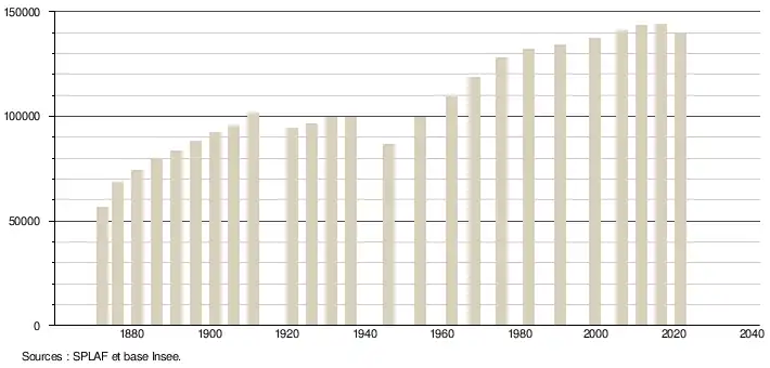 - Population municipale légale en vigueur au 1er janvier 2024, millésimée 2021, définie dans les limites territoriales en vigueur au 1er janvier 2023, date de référence statistique : 1er janvier 2021.