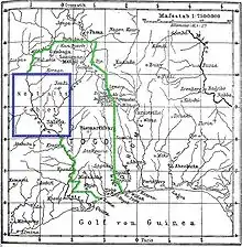 Ce territoire s'étend du nord au sud à la confluence de la rivière Dako et de la Volta blanche[pas clair] ; d'est en ouest il dessine dans un rectangle les limites du domaine des tribus dagombas, tandis que la confluence du Trubong et de la Volta Noire marque la frontière occidentale.