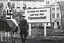 5 dont le nom provient de la ville la plus importante : Łódź. Cette région est rattachée au Warthegau le 9 novembre 1939[23] ; le 12 april 1940, Łódź est rebaptisée Litzmannstadt et le nom du Regierungsbezirk change également[23].