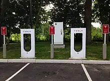 Tesla fabrique des Superchargeurs V3 à Giga New York[20] et il a ouvert ses premières stations V3 en 2019, qui peuvent fournir jusqu'à 24 km d'autonomie par minute (selon les conditions)[21]. Une station de 1 MW peut alimenter 4 bornes à une puissance de 250 kW chacune[22].