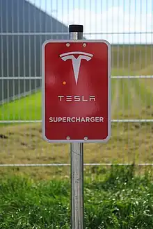 Tesla possède en propre la majorité des stations Superchargeurs, et le reste appartient à des opérateurs de flotte pour charger leurs véhicules Tesla, les compagnies de taxis par exemple. La puissance de ces bornes est limitée à 60 kW[40]. En , Tesla a modifié ses conditions de service pour interdire aux véhicules non personnels (les véhicles à usage commercial, comme les taxis, les véhicules de société, les véhicules gouvernementaux,...) d'utiliser les Superchargeurs. Cette interdiction s'applique uniquement aux véhicules achetés après le . D'autres options de recharge seraient proposées pour ces véhicules[41],[42].