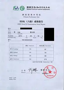 Le test d'évaluation de chinois ou Hanyu Shuiping Kaoshi (chinois simplifié : 汉语水平考试 ; chinois traditionnel : 漢語水平考試 ; pinyin : ), en abrégé HSK, est le seul test normalisé de la République populaire de Chine pour tester les compétences linguistiques en mandarin des personnes ne l'ayant pas comme langue maternelle, à savoir les étudiants étrangers, les Chinois d'outre-mer et les membres des minorités ethniques de Chine. Il est également connu sous le nom de « test d'évaluation du chinois » ou le « Test of English as a Foreign Language chinois »[1].