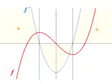 En analyse réelle, le test de la dérivée première permet de déterminer l'allure d'une fonction dérivable en étudiant le signe de sa dérivée. Grâce à ce test, on peut déduire les extrema locaux, le sens de variation de f et les points d'inflexion « horizontaux », permettant ainsi de donner une allure du graphe de la fonction .