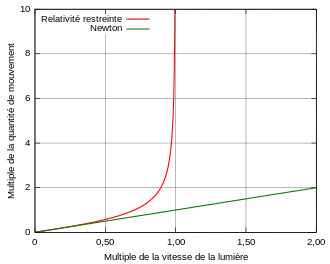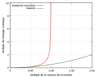 Donc, l'énergie et la quantité de mouvement relativistes augmentent de façon notable avec la vitesse d'une particule massive, qui ne peut excéder la vitesse de la lumière.