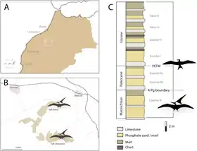 Ce ptérosaure fait partie d'un ensemble diversifié de ptérosaures découverts au Maroc dans les mines de phosphates de Sidi Daoui et de Sidi Chennane sur le plateau de Khouribga dans le bassin d'Ouled Abdoun, à environ 120 km au sud-est de Casablanca. Ils sont décrits ensemble par Longrich et ses collègues en 2018[2]. Ces ptérosaures appartiennent à trois familles différentes : les Azhdarchidae, les Pteranodontidae et les Nyctosauridae, et à pas moins de sept espèces différentes[2] :