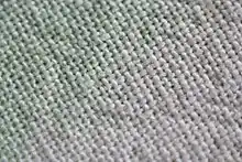 - Le tissage rend l'étoffe plus résistante. Cette technique néolithique nécessite le filage de la laine de mouton ou de chèvre, de la fibre de coton, laine, lin, ou soie, ces fibres pouvant subir une torsion à la main pour former un fil solide. L'art du filage est attesté dès la sédentarisation des hommes qui découvrent qu'il est possible de fabriquer un fil solide en parallélisant les poils ou les fibres végétales (laine, lin) puis en donnant manuellement une torsion aux faisceaux de fibres[7].
