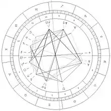 Il y a plusieurs variantes[21] dont les directions symboliques. Cette dernière méthode consiste à faire progresser d'un an par degré[22] systématiquement tous les éléments du thème radical (même les planètes dites ‘’rétrogrades’’) dans le sens des signes du zodiaque. Pour chaque âge de la vie, les aspects de la carte progressée relativement au thème radical sont alors examinés et interprétés. C'est une méthode simple qui a souvent la faveur des astrologues débutants car elle ne nécessite aucun calcul[10]. Une autre méthode[23] consiste à ajouter à la date du thème radical un nombre de jours égal à l'âge de la personne et de dresser un thème pour la même heure. Ce dernier, dit thème progressé, est alors interprété en le comparant au thème natal[24]
