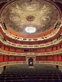 Les couleurs principalement rouge et or de la salle remontent à la restauration de 1958 et 1959. Seuls le parterre et ses fauteuils diffèrent de ces teintes avec une couleur davantage gris-vert.