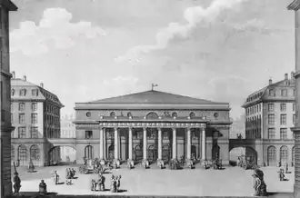 En 1767, le marquis de Marigny, alors directeur des Bâtiments du Roi, demande à Marie-Joseph Peyre et Charles de Wailly[3] de travailler à un projet de nouvelle salle pour le Théâtre-Français.