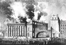 Pendant les journées des « Trois Glorieuses », en , le théâtre est au centre de l'insurrection de la jeunesse révolutionnaire. « À ce moment, sous l'arcade Molière, arrive un groupe d'hommes armés ; au coin du théâtre, un élève de l'école polytechnique, monté dans une charrette, est occupé à faire transporter des barriques de poudre… ».