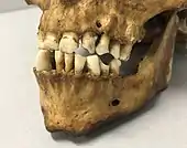 Théo avait les dents très cariées voire dévitalisées. On relèvera par ailleurs les encoches ovales mentionnées plus haut, situées dans la moitié gauche de sa bouche et formant une section quasi circulaire lorsque la mâchoire est entrouverte. Des analyses au microscope électronique à balayage ont révélé de fines traces de grattage, permettant de conclure à un phénomène d’usure par le bec en terre d’une pipe, dû aux grains de quartz qu’il contenait[6].