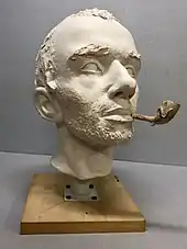 En 2001, l’historien Fabian Link, sous la direction de Gyula Skultéty, anthropologue et sculpteur, a réalisé une reconstitution faciale de Théo. Link l’a représenté sous les traits d’un homme d’une quarantaine d’années, au visage ridé et marqué par une vie de labeur. Les analyses ultérieures ayant révélé que Théo était mort à 30 ans déjà, Gyula Skultéty réalisa le portrait d’un jeune homme[14]. La reconstitution présente donc une variante plausible de l’aspect que Théo pourrait avoir eu au moment de sa mort.