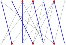 Un couplage d'un graphe G est un sous-ensemble d'arêtes de G deux-à-deux non adjacentes ; un sommet est couplé s'il est extrémité d'une arête du couplage. Un transversal de G est un sous-ensemble T de sommets de G avec la propriété que toute arête de G est incidente à au moins un sommet de T (on dit aussi que T couvre les arêtes de G et l'on appelle aussi T une couverture nodale de G).
