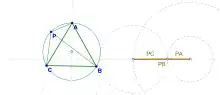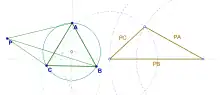 Des investigations plus approfondies montrent que si P n'est pas à l'intérieur du triangle, mais plutôt sur le cercle circonscrit, alors PA, PB, PC forment un triangle dégénéré, le plus grand étant égal à la somme des autres, cette observation est également connue sous le nom de théorème de Van Schooten[1].
