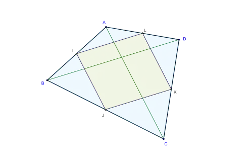 D'autre part, si ABCD est plan et convexe, son aire est le double de celle de IJKL.