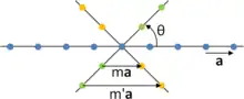 Considérons une ligne du réseau sur laquelle les nœuds sont séparés par le vecteur de translation a. En appliquant une opération de symétrie rotationnelle R d'ordre n (d'angle θ = 360°/n) sur cette ligne, on obtient une ligne de points (en vert sur la figure) séparés par la distance a ; ceci est aussi valable en appliquant l'opération inverse R–1 d'angle –θ (points orange).