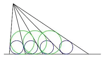 En géométrie, le théorème des cercles inscrits égaux concerne la construction suivante : on trace une suite de segments (les rayons) joignant un point fixé à une droite donnée (la base) telle que les cercles inscrits dans les triangles formés par deux rayons consécutifs et la base aient même rayon. Dans l'illustration, les cercles bleus définissent l'espacement entre les rayons.