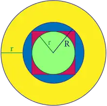Il existe bien une preuve, donnée dans l'article « Isopérimétrie » et fondée sur une symétrisation de Steiner. Elle est malcommode à généraliser en dimension quelconque. Bonnesen trouve une expression simple, en fonction d'un cercle inscrit et d'un circonscrit. Le cercle est dit inscrit dans un compact S s'il est inclus dans S et si son rayon r est maximal. Un cercle est dit circonscrit dans S s'il contient S et si son rayon R est minimal. L'inégalité de Bonnesen s'exprime de la manière suivante, si a est l'aire du compact et p son périmètre[17] :