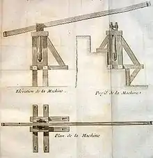 Léonard de Vinci aurait dessiné une machine basée sur la description d'Hérodote[51]. Les représentations ultérieures sont basées sur les croquis de Léonard de Vinci dans le Codex Madrid. Les représentations visuelles ne peuvent pas prétendre représenter la machine d'Hérodote avec certitude.