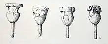 Cet outillage se composait de masses et de marteaux en diorite ou en dolérite, de lames et de couteaux en silex, de percuteurs et de forets. Des demi-sphères de calcaire permettaient le concassage de débris en poudre destinée à la fabrication du mortier.