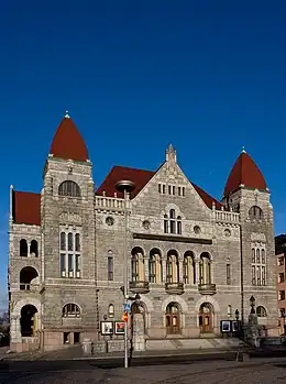 La grande scène se trouve dans le bâtiment principal et l'entrée est du côté de la place Rautatientori. Elle offre 885 places réparties en un parterre et deux galeries[2]. La scène fait 9 mètres de large et 19 mètres de hauteur[3] Le programme se compose de grandes productions.