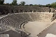 Théâtre antique de Sanxay (Vienne). Cavea en fer à cheval, orchestra ellipsoïdale.