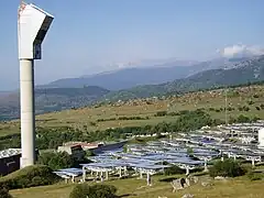 - un champ d’héliostats, structures mobiles équipées de miroirs, qui suivent automatiquement la course du soleil pour réfléchir et concentrer en permanence le rayonnement solaire sur une cible en haut d’une tour. Sur les 201 prévus initialement, 195 héliostats sont aujourd'hui pleinement utilisables (les 6 autres ayant été démantelés pour les besoins des expériences d’astrophysique) ;