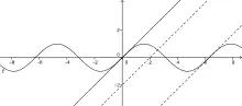 Autrement dit : toute tangente au graphe de dont la pente n'est ni maximum, ni minimum, possède une parallèle sécante au graphe en deux points. Le TAF permet en outre d'affirmer[8] que si la valeur n'est atteinte qu'au point , alors les deux extrémités de la corde sont de part et d'autre du point de tangence[7] (réciproque « forte »).