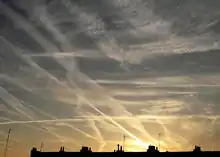La théorie conspirationniste des chemtrails [ˈkɛmtreɪls][1] avance que certaines traînées blanches créées par le passage des avions en vol sont composées d'agents chimiques ou biologiques délibérément répandus en haute altitude par diverses agences gouvernementales pour des raisons dissimulées au grand public. Cette théorie complotiste est rejetée par la communauté scientifique[2], qui indique qu'il s'agit de simples traînées de condensation.
