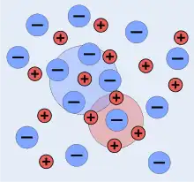 La théorie de Debye-Hückel est un modèle destiné à expliquer l'écart à l'idéalité en solution, à travers le calcul des coefficients d'activité dans l'échelle des concentrations[1]. Proposé par Peter Debye et Erich Hückel en 1923[2], cette théorie est basée sur le modèle de l'atmosphère ionique. L'écart à l'idéalité y est vu comme la conséquence de l'interaction électrostatique entre les sphères de solvatation ioniques.