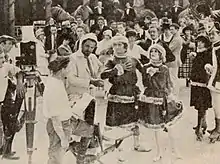 Prise de vue lors du tournage du film, avec Clarence Geldart et Fred Stone (parue dans Exhibitors Herald).
