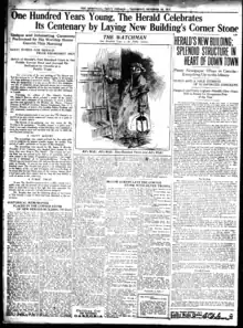 - (en) « One hundred years young, the Herald celebrates its centenary by laying new building's corner stone », Montreal Herald, .