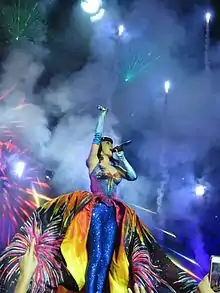 Le lendemain, il est annoncé que le créateur italien Fausto Puglisi avait conçu le costume au thème égyptien du deuxième acte [12][source insuffisante]. Le , Perry a dévoilé des esquisses de sa tenue une pièce pour la section « Hyper Neon » du concert. Ce costume a été surnommé son « Birthday Suit » et a été imaginé par Discount Universe[13][source insuffisante]. Le , la chanteuse a déclaré que Todd Thomas avait contribué à la conception d’une robe qui apparaît dans la garde-robe de la tournée[14][source insuffisante]. Le , Katy Perry a elle-même réalisé l’image d’une robe Yin Yang avec l’aide de son ami et ancien directeur artistique de l’émission America's Next Top Model, Johnny Wujek, aux côtés de la marque Marco Marco[15][source insuffisante]. La dernière tenue, qui a été présentée le , est un body étincelant créé par le Alexis Mabille[16][source insuffisante].
