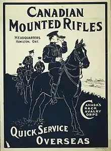Le 3rd Regiment, Canadian Mounted Rifles, CEF a été créé le . Le de l'année suivante, il s'embarqua pour la Grande-Bretagne. Le suivant, il débarqua en France où il combattit au sein de la 1re Bridage de fusiliers montés canadienne. Le , son personnel fut transféré aux 1er et 2e Bataillon des Canadian Mounted Rifles (en) qui combattaient au sein de la 3e Division canadienne[4]. Il fut officiellement dissous le [2].